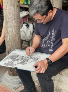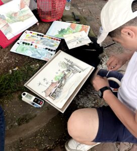 Vậy là một cuối tuần đầy hứng khởi với các họat động trưng bày triển lãm, ký họa, biểu diễn,.. đã diễn ra tại Đoài Community. Đón chào sự tham gia của Câu lạc bộ Họa sỹ màu nước Hà Nội HWA , Urban Sketchers Ha Noi, Urban Sketchers Vietnam, Lớp mỹ thuật luly art đã tới giao lưu trong chương trình ý nghĩa lần này. Mọi người đã được tham quan và lưu lại các tác phẩm về những góc làng rất đỗi đặc trưng như: nhà cổ, đình mông phụ, ngõ xóm, nhà thờ họ Đạo, nhà thám hoa Giang Văn Minh,… Cảm ơn về bài phát biểu đầy tâm huyết của anh Om và anh Thắng Nok – 2 người bạn thân thiết cùng chung 1 tình yêu đặc biệt giành cho Đường Lâm. Cũng như những màn trình diễn hết sức tuyệt vời trong đêm giao lưu của tối ngày 14/10 cùng với những món ăn đặc trưng của Đường Lâm.